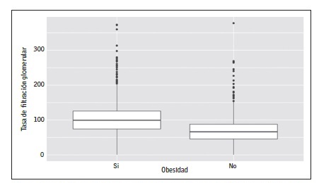 En este mismo sentido, otro estudio realizado en Colombia evidenció que la ERC está condicionada por el efecto prolongado de la obesidad, junto con otros factores independientes, que actúan sobre diferentes parámetros renales funcionales que determinan el desarrollo y progresión de la enfermedad renal25. La obesidad, por sí sola, es capaz de aumentar la demanda funcional renal por un aumento de la masa corporal sin el correspondiente aumento en el número de nefronas, lo cual requiere como adaptación de un aumento del flujo plasmático renal y con él, de la velocidad de filtración glomerular. Así, independiente del desarrollo de diabetes e hipertensión, la obesidad puede provocar un síndrome de hiperfiltración glomerular explicando la existencia de microalbuminuria14.