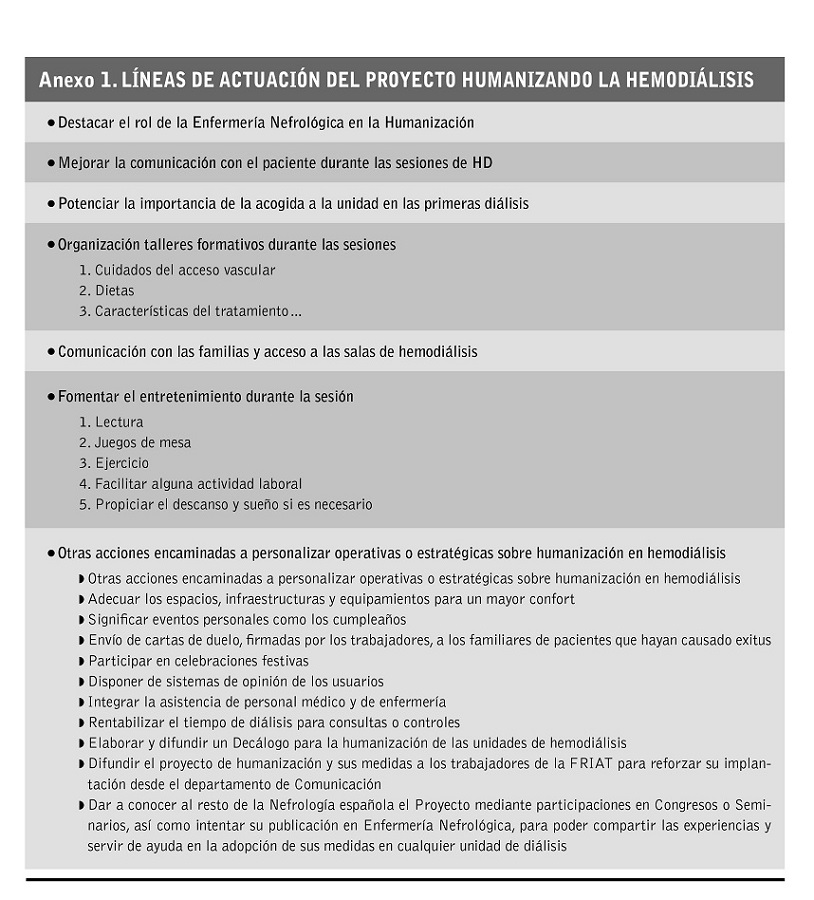 Las intervenciones que se implementaron para potenciar la humanización de las unidades de hemodiálisis se reflejan en los anexos 1 y 2.