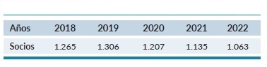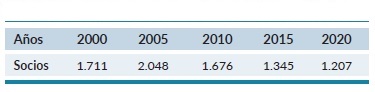 Esa falta de arraigo o identidad con la enfermería nefrológica, reflejada en los puntos anteriores, se ve refrendada en la evolución del número de socios. Como podemos apreciar en la tabla 1, entre los años 2000 y 2020 se han perdido 504 socios, es decir un 30% aproximadamente. Esta tendencia, lejos de corregirse, sigue una curva descendente en los últimos 5 años, como muestra la tabla 2, periodo en el que se han perdido 202 socios (16%). El número de socios del presente año, es con toda seguridad, la cifra más baja de socios que ha tenido la SEDEN en los últimos 25-30 años.