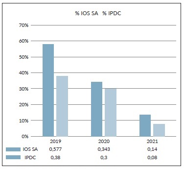 En 2019 los pacientes en riesgo fueron 162 (107 prevalentes y 55 incidentes), siendo el 75% hombres (n=121). El tiempo en riesgo fue de 1.317 meses, durante los cuales se produjeron 52 episodios de IOS. Ratio 0,47 episodio/paciente/año. El 57,7% de las IOS fueron producidas por SA ( n=30). Hubo 42 episodios de infección peritoneal, siendo 38% por IPDC (n=16).