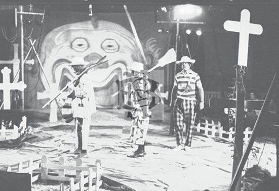 La obra mezcló elementos del clown y del absurdo, generó el espacio, el ambiente de la carpa. Probablemente por indicaciones de las didascalias, el circo era utilizado, a su vez, como espacio significante, y no era obliterado o suspendido, como ocurre en la representación del realismo.