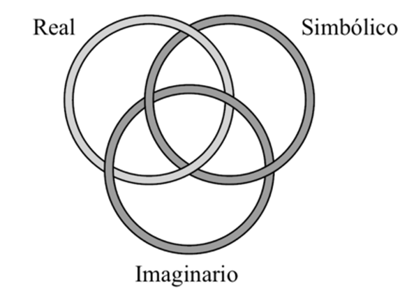 Si partimos del nudo borromeo -al que Lacan recién apela a partir de su Seminario 19 …O peor- para introducir los tres registros es porque, entre otras razones, este permite dar cuenta de su articulación simultánea, y al mismo tiempo, irreductible. En otras palabras, porque muestra que ninguno de los tres órdenes tiene absoluta autonomía respecto de los otros, sino que deben ser pensados en su anudamiento, tal como se observa en la figura: