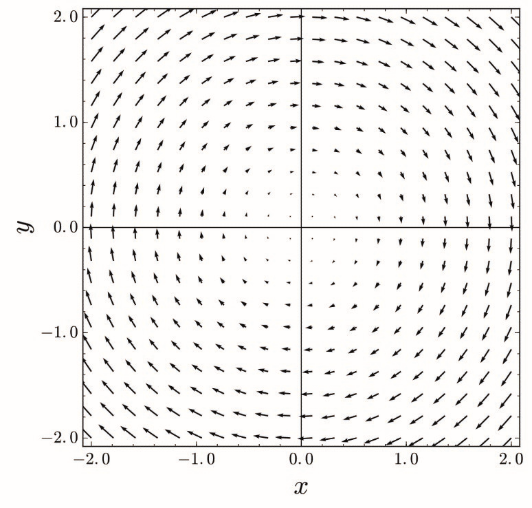 Los puntos de indeterminación donde P = Q = 0 constituyen las singularidades del campo de vectores. […] La existencia y la repartición de singularidades son nociones relativas al campo de vectores definido por la ecuación diferencial; la forma de las curvas integrales es relativa a las soluciones de esta ecuación. Los dos problemas son complementarios porque la naturaleza de las singularidades del campo es definida por la naturaleza de las curvas en su vecindad; no es menos cierto que el campo de vectores, por un lado, las curvas integrales por el otro, son realidades matemáticas esencialmente distintas (Lautman, 1946: 42).