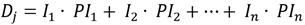 El valor de ICVUo se determina mediante la suma ponderada compleja de las mdimensiones (Dj)que lo componen (ecuación 2). A su vez, el resultado de las dimensiones (Dj)se obtiene a partir de la suma ponderada de los n indicadores(Ii)que la componen, tal y como se expresa en la ecuación(3).