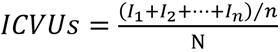 El valor del ICVUs se determina como el valor global de la media de las medias (media ponderada) de los valores de los indicadores de percepción que componen el índice aplicado a una muestra de individuos, tal y como se expresa en la ecuación (4).