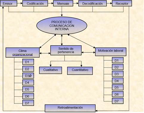 Para la medición de las variables organizacionales que se utilizan y que se consideran dentro del comportamiento organizacional, se utiliza el modelo de evaluación del proceso de comunicación interna creado por dos de los autores del presente trabajo[6]. Ver figura 6.