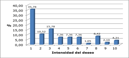 En la figura 4 se muestra la intensidad del deseo por cambiar de trabajo.