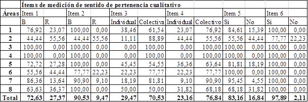 Cuestionario de sentido de pertenencia: El cuestionario contiene un total de 23 ítems y su objetivo es reflejar el comportamiento del compromiso y sentido de pertenencia de los trabajadores hacia la organización. La implicación de los trabajadores a su organización tiene su expresión en la actitud del individuo hacia la empresa, y se refleja en la fidelidad, identificación y participación en la misma. En la literatura consultada se valora la construcción de indicadores intangibles y dentro de ellos se destaca el sentido de compromiso o de pertenencia a la organización [5].