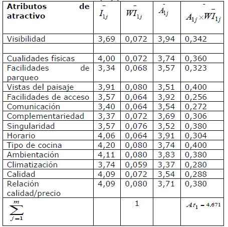 El atractivo se determinó para una muestra representativa de los SC de restauración del destino turístico de Varadero. Los resultados obtenidos para uno de los restaurantes estudiados pueden observarse en la tabla 2.