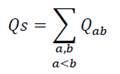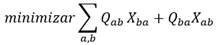 De esta reformulación se puede ver que la primera suma no depende del valor de Xab por lo que es un elemento constante en la función objetivo que puede calcularse a priori, es decir antes de realizar la optimización. Note que este valor constante Qs se corresponde con la suma de los elementos del triángulo superior de la matriz Qab, en la ecuación 23.
