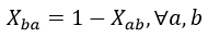 Debido a la existencia de la restricción tipo 2, realmente cada variable Xab es dependiente del valor de Xba . Esto implica que se puede rescribir la restricción de tipo 2 de la manera siguiente en las ecuaciones 18 y 19:
