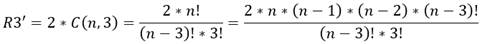 Las restricciones de tipo 3 son las más numerosas, porque se forman de las 3-permutaciones de los elementos posibles en los rankings. Presenta una para cada permutación de tamaño 3 tomados de los elementos posibles. De este modo, la cantidad de permutaciones de este tipo, se observan en la ecuación 7: