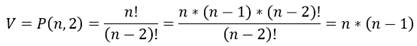 Por tanto, la cantidad V de variables puede calcularse como la cantidad de 2-permutaciones P(n,2), con la ecuación 4: