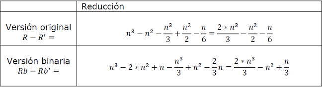En cuanto a las restricciones, la tabla 2 muestra la cantidad de restricciones que se dejaría de evaluar en la versión normal (es decir, R-R’) y en la versión binaria (Rb-Rb’ y Rb'/Rb), es decir, la reducción.