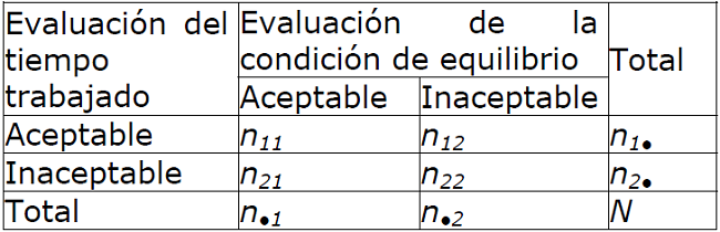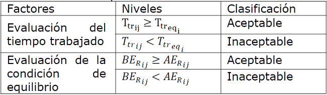 La valoración de la correspondencia entre las clasificaciones que resultan del análisis de la utilización a través de Ttreq y la condición de equilibrio respecto a los resultados económicos reales se basó en la prueba de acuerdo entre dos factores. Los factores a contrastar así como las clasificaciones correspondientes se muestran en la tabla 1.