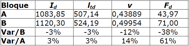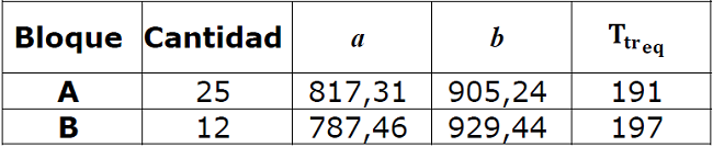 Los valores calculados de: Id , v, ltd , Fd, a, by Ttreq , correspondientes a cada bloque para el periodo se muestran en la Tabla 5 y la Tabla 6.