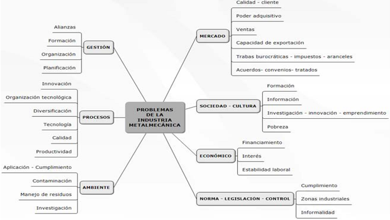 Señalan Ovalle et al. (2013) que la industria metalmecánica es de los sectores con mayores posibilidades de generar desarrollo, bienestar y empleo, producto de la asimilación de tecnologías, criterios de diseño, calidad y diferenciación de sus productos, además de su potencial integrador con otras industrias [29]. En el Ecuador, la metalmecánica se define de acuerdo con el Decreto Ejecutivo 757 dictaminado por la Presidencia de la República de Ecuador (2011) como “[…] aquella que se dedica al desarrollo tecnológico, procesos de manufactura y transformación de materias primas básicas, en sus diversas formas y calidades […] incluye: los artículos metálicos elaborados, la maquinaria eléctrica y no eléctrica, metales no ferrosos (aluminio, bronce y cobre), fabricación de metales comunes, maquinaria y equipo, maquinaria de oficina, línea blanca, muebles de industrias manufactureras y reciclamiento de desperdicios y desechos metálicos, entre otros” [30].