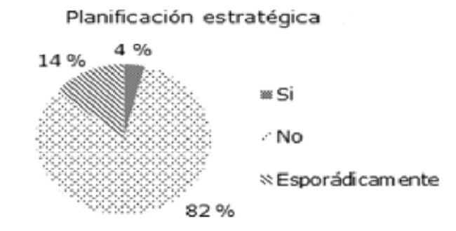 El estudio realizado reveló la poca capacidad de planificación de estas PyMEs, evidenciado que el 82 % de las encuestadas no realiza planificación estratégica, el 14 % la aplica esporádicamente y solo un 4 % la lleva a cabo sistemáticamente, como se observa en la figura 2.