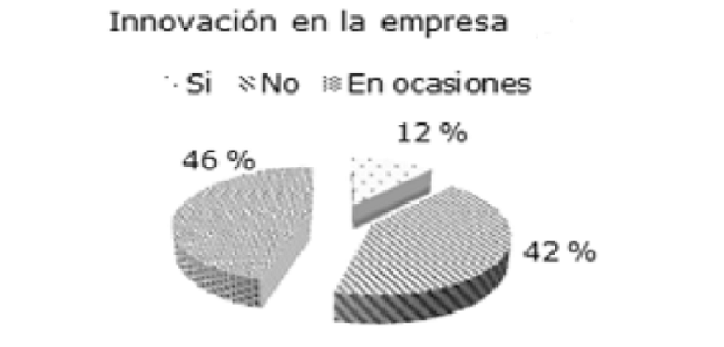El concepto de innovación no está totalmente claro para las PyMEs encuestadas, solo el 12 % de estas lo aplican mediante la utilización de incentivos; pero sin una estructura formalizada, mientras que el 46 % y el 42 % lo aplican solo en ocasiones o no lo aplican, lo cual se muestra en la figura 3.