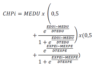 Los resultados se fundamentan en el CH en una Institución de Educación Superior a partir del enfoque de [21]; para ello, la propuesta de medición del CH procura cuantificarlo en términos financieros o productivos (control de gestión), con lo cual, el estudio establece un análisis a través del índice de Portela (2001), al tomar en cuenta la perspectiva empírica apoyada en la comparación de variables de experiencia profesional y el grado de conocimiento [28], que se describe en la ecuación 1[22]: