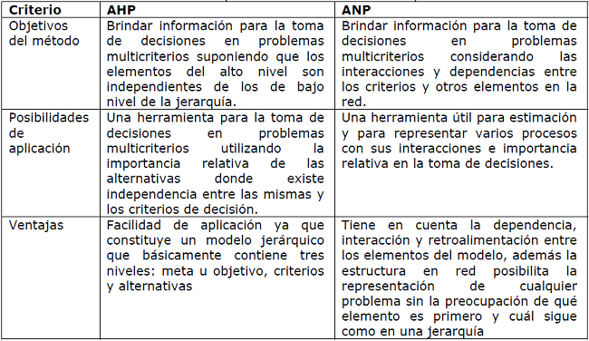 Se compara la utilización de los métodos multicriterio Proceso Analítico Jerárquico (AHP) y Proceso Analítico Sistémico (ANP) para la determinación de un indicador integral cuyos principales aspectos obtenidos se reflejan en la tabla 1. Se parte de los elementos comentados en la introducción relacionados con las evaluaciones no homogéneas que se logran con los indicadores integrales planteadas por León (2012) y Vinajera Zamora (2017) [10, 6].