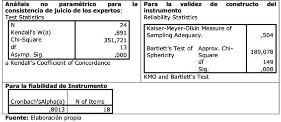 A esta muestra de expertos se le aplica una encuesta conformada por dieciocho (18) elementos que conforman el procedimiento, para evaluarlos con una escala de uno (1), totalmente en desacuerdo, a cinco (5) muy de acuerdo. A partir de la evaluación independiente realizada y del empleo del software SPSS v.15.0 se obtiene los elementos que conforman el procedimiento para la mejora de procesos en las cementeras, así como la consistencia del juicio emitido a partir del Coeficiente de Concordancia de Kendall y de la prueba de hipótesis no para-métrica correspondiente (ver tabla 1). Los resultados de la prueba indican que el juicio de los expertos fue consistente (W=0.891) con un nivel de significación menor de 0.1%, infiriéndose que el procedimiento debe estar conformado por los 18 elementos contenidos en el instrumento utilizado para su validación.