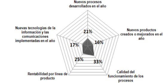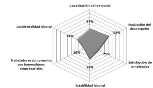 En la Figura 7 se observa que son pocas las empresas que miden las variables de capital estructural a través de indicadores. Resulta interesante contrastar que los directivos evalúan satisfactoriamente la gestión de la calidad, sin embargo, solo el 33% de las empresas poseen indicadores para medirla, a pesar de existir en el país un marco regulatorio que norma la calidad.