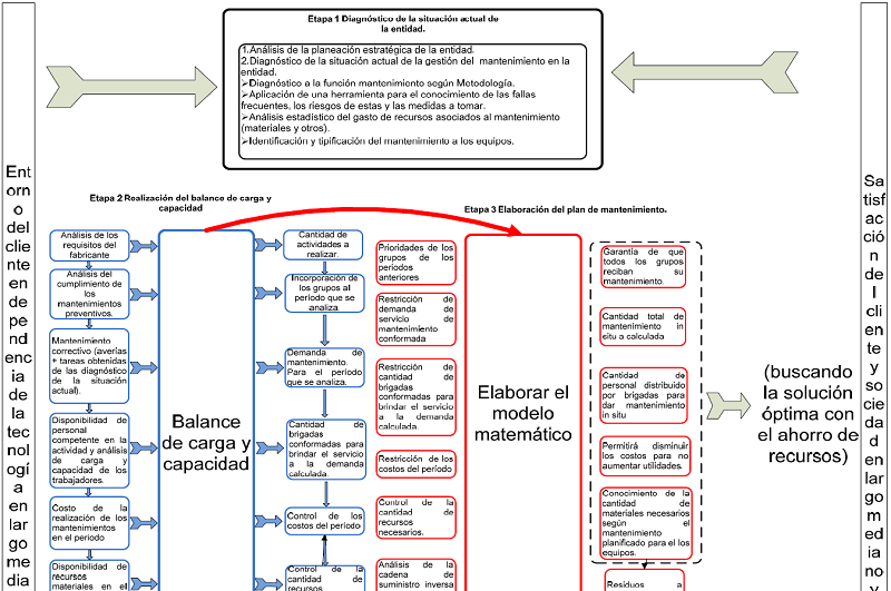 Este modelo estará compuesto por 4 etapas fundamentales diagnóstico, planificación que comprende la realización del balance de carga y capacidad y la elaboración del modelo matemático y control de la gestión del mantenimiento.