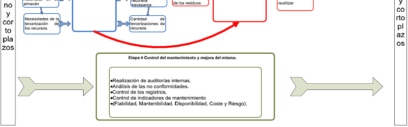 La etapa 4 es el resumen de todas las anteriores analizadas en ella se reúnen los especialistas de las distintas áreas de trabajo y exponen sus deficiencias, este trabajo estará apoyado por la realización de auditorías internas sobre el tema de mantenimiento. A partir de este análisis se verifican los requisitos del cliente para este servicio. Se elabora un plan de mejoras continuas que permite solucionar las deficiencias encontradas y mantener el ciclo de mejora con la retroalimentación del proceso. Lo que permitirá la integración del plan de mantenimiento para la efectividad en la toma de decisiones con resto a la planeación estratégica de la entidad.