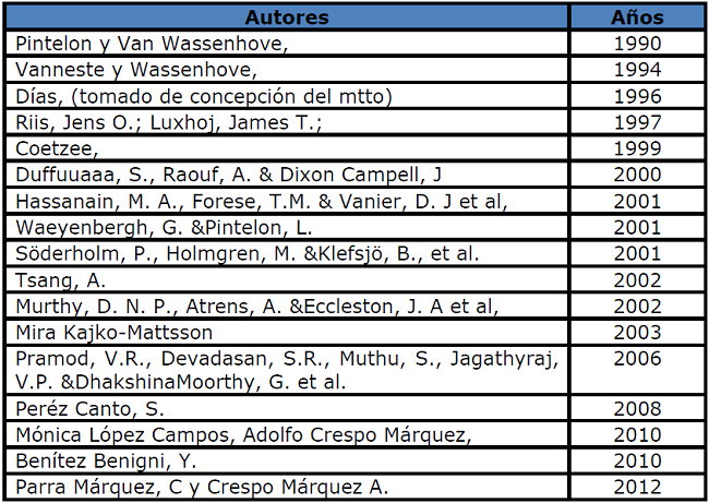 A partir del análisis de los modelos de gestión del mantenimiento, se llega a la conclusión que los aspectos más importantes considerados en ellos son la planificación, la utilización de modelos matemáticos para la gestión y el control del mantenimiento. Para la elaboración del modelo propuesto se consideran otros modelos, los cuales se muestran en la tabla 1.