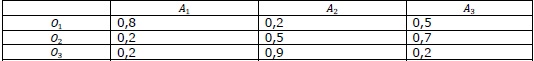 Supóngase, para simplificar, que un problema decisional consta de un solo decisor y que este establecerá los valores de la matriz de decisiones concernientes a cada atributo en el formato , es decir, valores reales. Considere la escala (cero-uno) para otorgar dichos valores. Considere también que todos los atributos son de beneficio. En este contexto, la matriz decisional dada es mostrada en la Tabla 1 y las relaciones subjetivas de preferencia entre las alternativas () establecidas por el decisor se muestran en la Tabla 2.