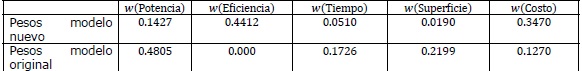 Note que se asume que la información incompleta no está disponible. El vector solución para los pesos calculado por los modelos nuevo y original fueron obtenidos con ayuda del software libre Wolfram Mathematica 8 y se muestran en la Tabla 9: