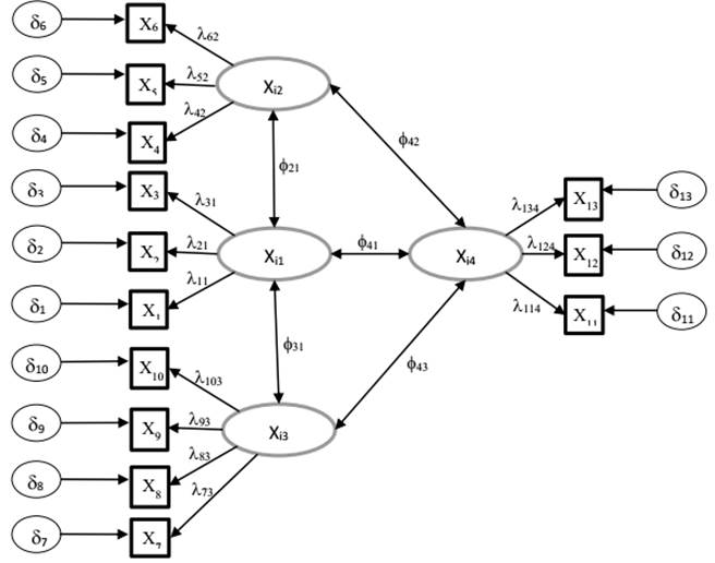 Representan la covariación entre las variables latentes exógenas: Φ21, Φ31, Φ41, Φ42, Φ43