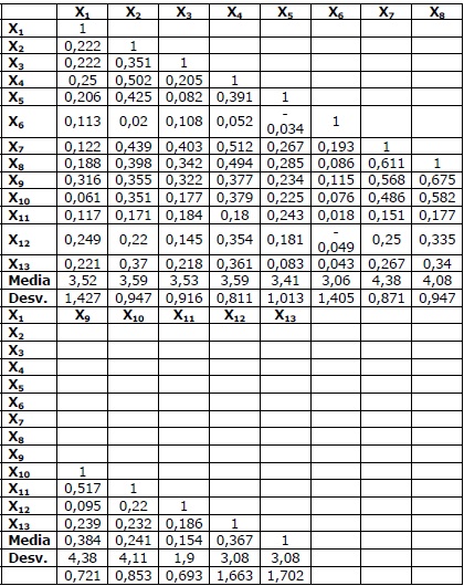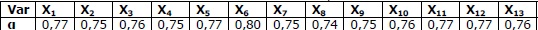 Para el total de ítems se obtuvo un Alpha de Cronbach de 0,78 lo cual se considera aceptable (mayor que 0,7). Considerando los resultados de la tabla 4, que reflejan la variación de los cálculos si es eliminado alguno de los ítems del cuestionario, no resultó factible dejar fuera del análisis a ninguno de estos. Solo en el caso de uno de los ítems (X6) se produce un aumento, pero este no resulta significativo.