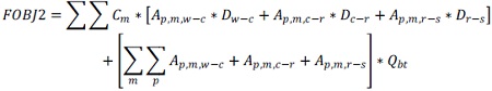 es la cantidad de producto p transportado en el modo de transporte m entre el proveedor w y el centro de recolección c en tonelada.