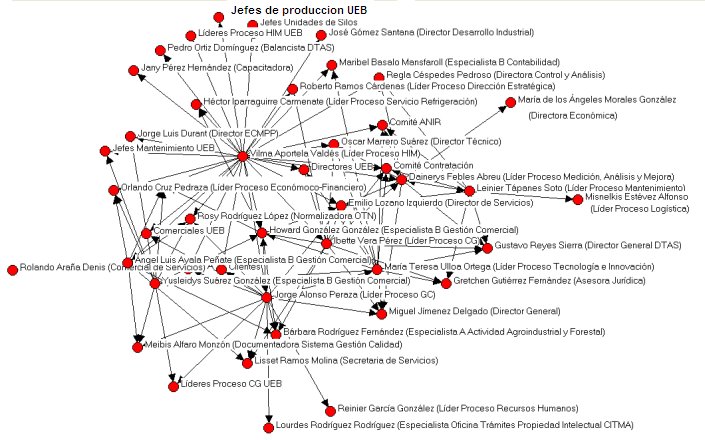 RESUMEN: El análisis de redes sociales, tiene sus mayores usos en las redes de publicaciones, redes de co-citaciones, estructuras de colaboración y recursos de información en la Web. Hoy día, comienza a formar parte de las herramientas de auditoría de gestión de conocimiento, aunque son escasas las aplicaciones asociadas a las relaciones laborales y la interacción de las personas como resultado de sus tareas en el puesto de trabajo. El objetivo de la presente investigación es desarrollar un procedimiento para el análisis de redes sociales como herramienta de la auditoría de gestión del conocimiento. Como resultado se propone una metodología para la aplicación del análisis de redes sociales que facilita la aplicación de otras herramientas de gestión del conocimiento, tales como: el método DACUM y los mapas de conocimiento. Los métodos utilizados son: análisis síntesis, hipotético deductivo, enfoque de sistema y los análisis de intermediación, cercanía, centralidad de grado y clúster.