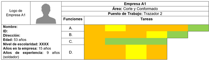 En la figura 5 y 6 se muestra, a modo de ejemplo, dos mapas de conocimiento aplicados a dos trabajadores del puesto de trazador en el área de corte y conformado (la diferencia entre el conocimiento existente entre ellos. A partir del método DACUM modificado, originalmente concebido para la descripción ocupacional de un puesto de trabajo, ahora con un acercamiento a la Gestión del Conocimiento y acompañado de herramientas que facilitan su implementación. La nueva propuesta ofrece la extensión de una matriz con la inclusión del conocimiento necesario para la ejecución de tareas y funciones, lo que convierte al método en una herramienta de uso factible en la elaboración de programas de superación y en los procesos de AGC [18].
