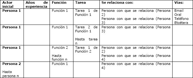 El actor inicial aparecerá en tantas filas del cuadro como actores con los que se relacione.