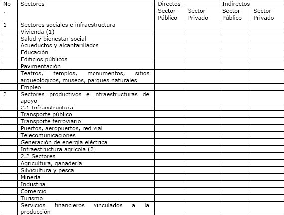 Se muestran los impactos directos e indirectos al sector público o privado que provocan los desastres: poblacional, económico, social y ambiental en la ocurrencia, la población afectada necesita de la ayuda de los actores de asistencia humanitaria que participan en la organización, para poder mitigar los daños ocasionados por el evento.
