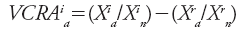 donde X es el valor de las exportaciones agroalimentarias, α= cualquier producto en este caso es arroz, i= país de origen, r = resto del mundo, n = bienes comercializados menos el producto a. Este índice arroja valores entre 1 (competitivo) y - 1 (no competitivo), además de que tiene mejores propiedades estadísticas que la ventaja competitiva, como una media y distribución más estable. El índice mide la competitividad y el desempeño de las exportaciones e importaciones a través de datos de comercio ex post, lo que permite identificar productos que tienen competitividad, distinguiendo además, un patrón de especialización.