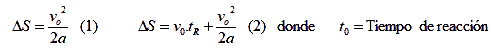 Comparando la ecuación del modelo, con la ecuación que ajusta los datos experimentales, se determina el tiempo de reacción del chofer y la aceleración del auto.