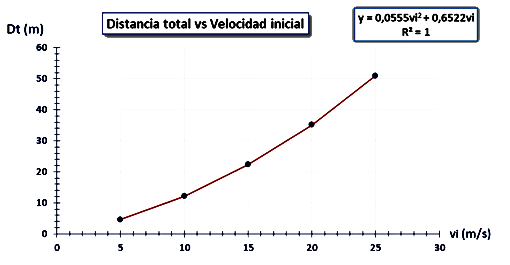 Gráfico de distancia total en función de la velocidad inicial del auto