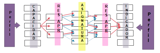 Para poder impulsar el desarrollo de capacidades en el estudiante, se trabaja sobre habilidades y destrezas que se valoran en resultados de aprendizaje; mismos que se desarrollan en las disciplinas o asignaturas, que se presentan en las mallas curriculares. Para asegurar una IC, de las disciplinas del Área Razón y Fe, se observó constantemente las relaciones entre perfil, capacidad, resultados de aprendizaje y asignatura, volviéndose desde la asignatura a los resultados e indicadores para afinar estas relaciones con el perfil general, como se expresa el siguiente esquema: