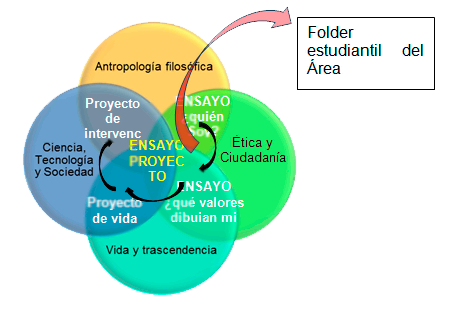 En Antropología Filosófica el PF es un ensayo, donde el estudiante define ¿quién es el ser humano? y ¿quién soy yo?; esta respuesta encuentra en la asignatura de Ética y Ciudadanía el espacio para determinar qué valores permiten dibujar el ser humano que desarrolló en el ensayo de Antropología Filosófica y ¿cómo vivirlos?. Este segundo ensayo le abre al estudiante en la asignatura Vida y Trascendencia a la confrontación de su ser trascendente, para que él pueda formular su Proyecto Personal de Vida (PPV), donde conjuga el modelo de ser humano que descubrió, ese ¿quién soy?, con los valores que le exige vivir ese descubrimiento, y que le define una serie de comportamientos en la vida cotidiana como proyecto en todas sus dimensiones.