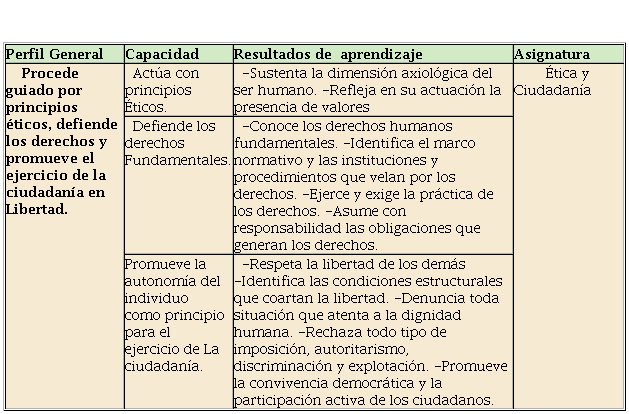 Relación perfil - asignatura de Ética y Ciudadanía