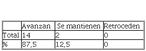 El comportamiento de los estudiantes en cuanto a los avances logrados, anexo 3, según los resultados de la prueba de cambios de signo, se obtuvo una probabilidad (p=0,125) menor que 0,5, lo que demuestra la significatividad de los resultados. Estos reflejan que 14 estudiantes (87,5%), lograron avances, se mantuvieron dos estudiantes (12,5%) y ninguno retrocedió.