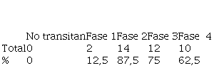 Con la aplicación de las acciones para dar cumplimiento al desarrollo de estas actividades, se logró el tránsito de los estudiantes por las diferentes fases de desarrollo de la comunicativa oral pedagógica, anexo 2 donde diez estudiantes (62,5%), alcanzaron el tránsito por las cuatro fases; 12 estudiantes (75 %), lo hicieron hasta la tercera fase, 14 estudiantes (87,5%), transitaron por la primera y segunda fase; y solo dos estudiantes (12,5%), transitan solo por la primera.