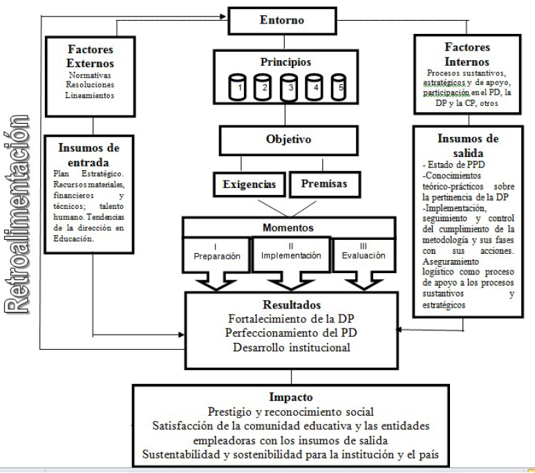 Este principio se asume a partir de las concepciones que defienden autores como (Almuiñas, 1999; Ferriol, 2011; Galarza, 2007; Galarza y Almuiñas, 2010; León, 2011 y Rivero, 2019). Se coincide en que el desarrollo eficiente de la DP en las IES debe sustentarse en las dimensiones: social, técnica, política, cultural, jurídico y económica.