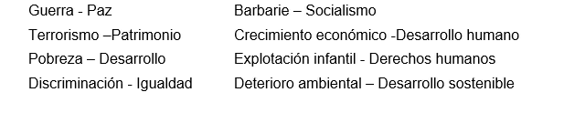 Presentar los nodos cognitivos en unidad de contrarios o par dialéctico para provocar el debate.