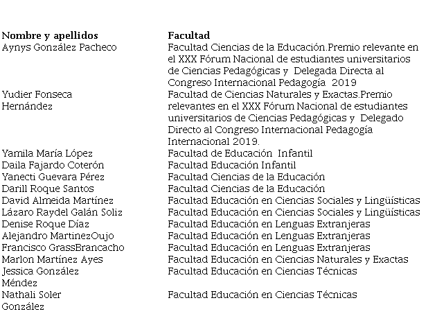 Comisión científica organizadora: APC Filial La Habana. Dirección Provincial de Educación La Habana. Universidad de La Habana. Universidad de Ciencias Pedagógicas “Enrique José Varona”. Instituto Central de Ciencias Pedagógicas. Ministerio de Educación Superior. Universidad de las Ciencias Informáticas UCI.